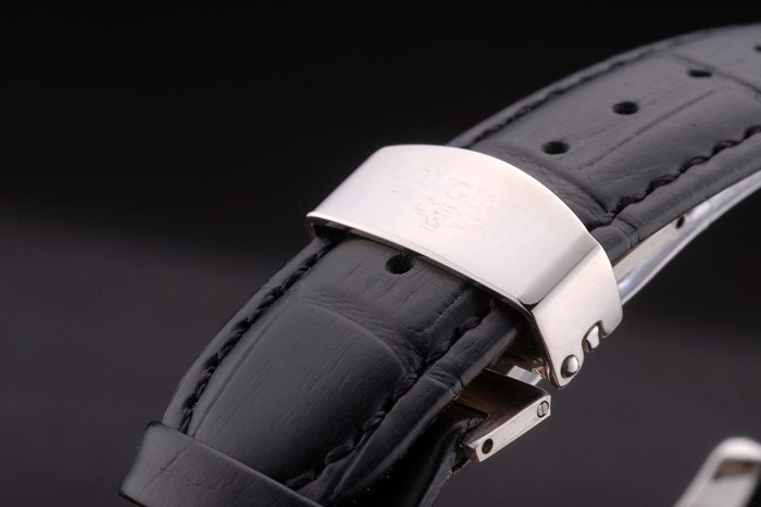 Bracelet: Longines värme präglat svart krokodil läderrem med Longines logo inskrivet och polerat krok rostfritt stål clasp
