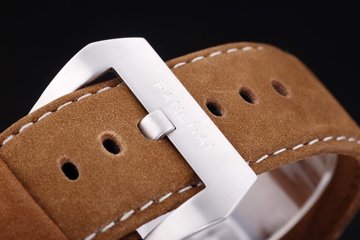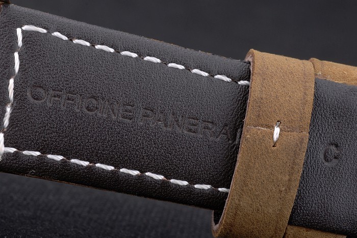 Bracelet: Heat präglade Officine Panerai Italien stämplat tan mocka läderband med rostfritt stål krok spänne spänne