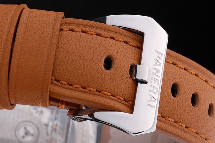 Bracelet: hög kvalitet brunt läder präglat med Panerai namn underneath