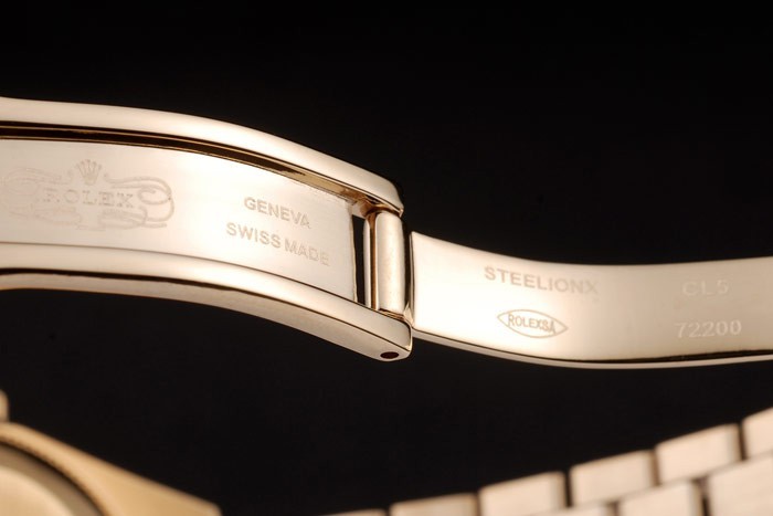 Bracelet: 18k gult guld guldpläterade rostfritt stål länk armband med Rolex graverad dold lås visar Rolex logo