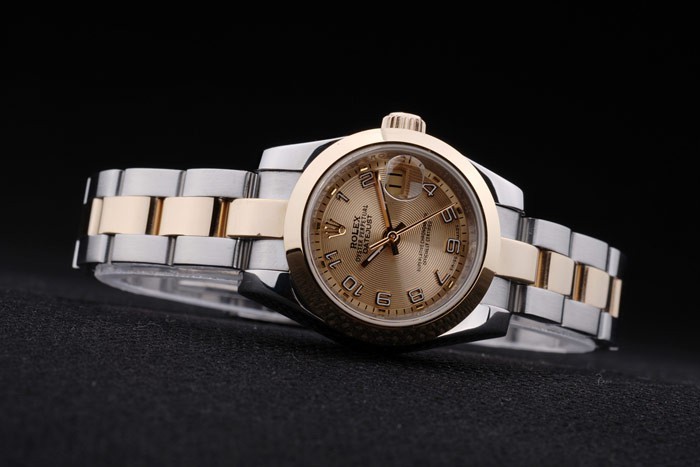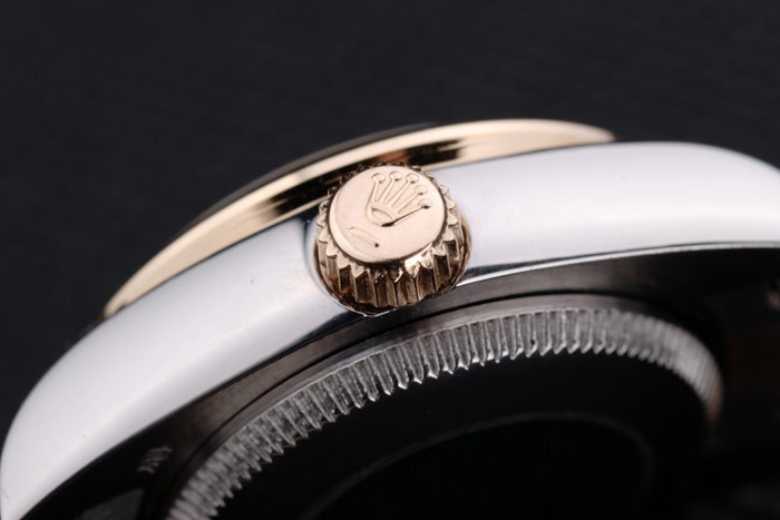 Crown: 18k gult guld stål cutwork krona med Rolex logo