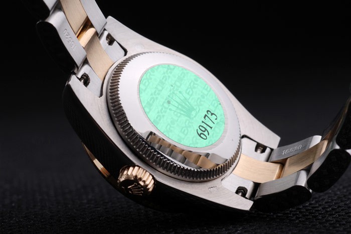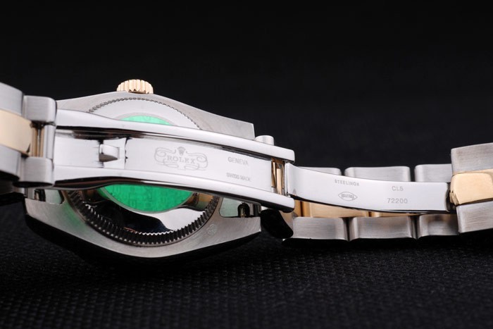 Tillbaka: Rostfritt stål push-in målet med grön Rolex logo stamp