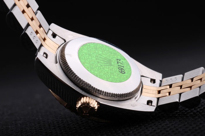 Tillbaka: Rostfritt stål push-in målet med grön Rolex logo stamp