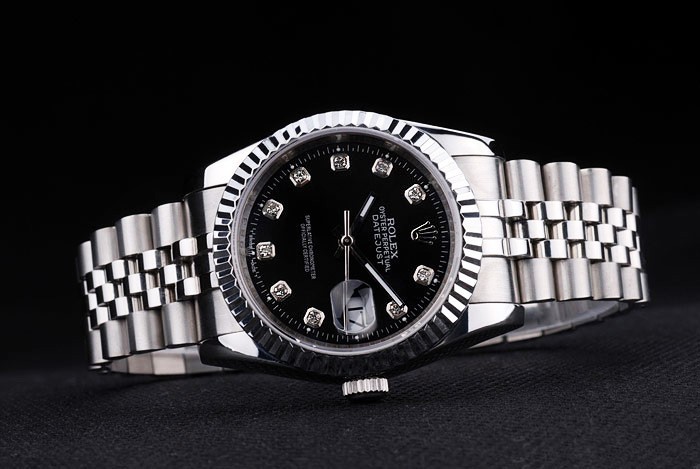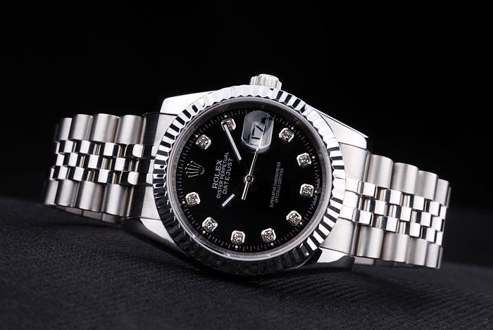 Bracelet: Borstad och polerat rostfritt stål armband med Rolex gravyr dold spänne visar Rolex logo