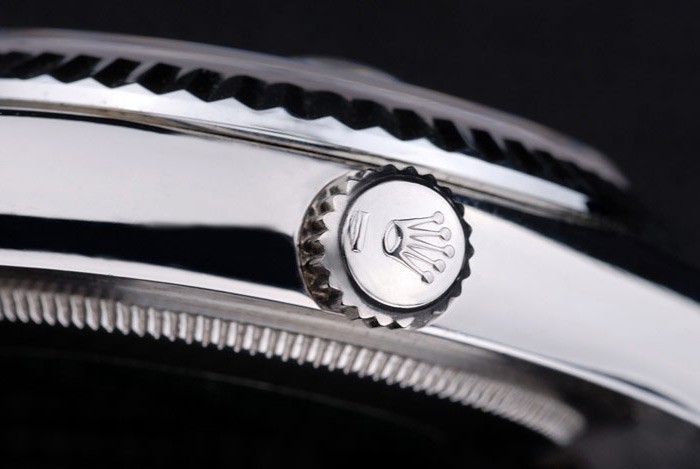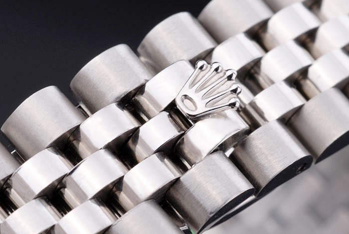 Crown: Polerat cutwork rostfritt stål krona med Rolex logo