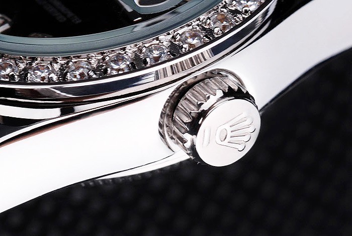 Crown: Polerat cutwork rostfritt stål krona med Rolex logo