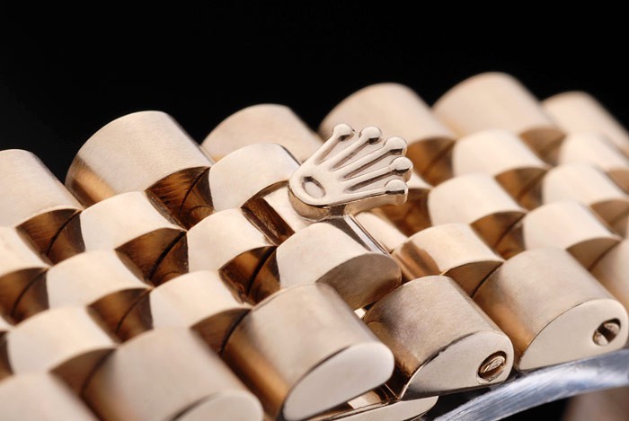 Crown: 18k gult guld stål cutwork krona med Rolex logo