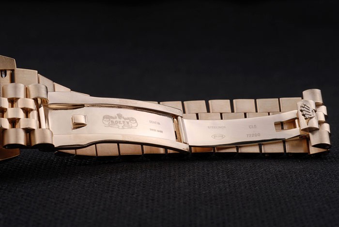 Bracelet: 18k gult guld guldpläterade rostfritt stål länk armband med Rolex gravyr dold spänne visar Rolex logo