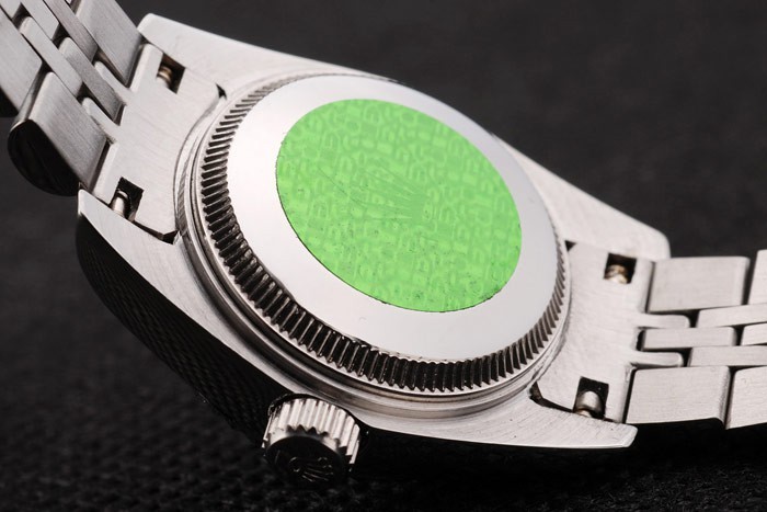 1Back: Tryck in rostfritt stål tillbaka med grön Rolex klistermärke och markings