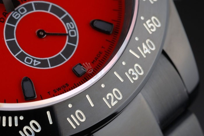 Crown: Ion pläterad cutwork krona med Rolex logotyp och en tryckknapp krona på båda sidor om it