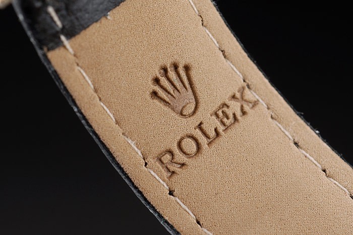 Bracelet: Rolex värme präglat svart krokodil läderrem med graverad gult guld utbyggnad lås med Rolex logotyp på top