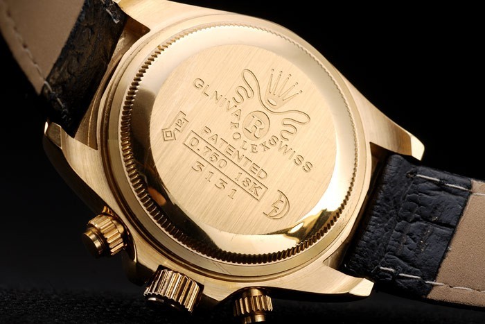 Tillbaka: Gul guldpläterad snap-in tillbaka med Rolex engravings