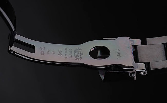 Crown: Lackerad cutwork krona med Rolex logotyp och ytterligare två kronor på ömse sidor av it