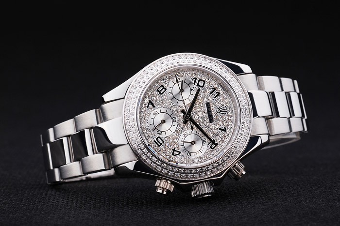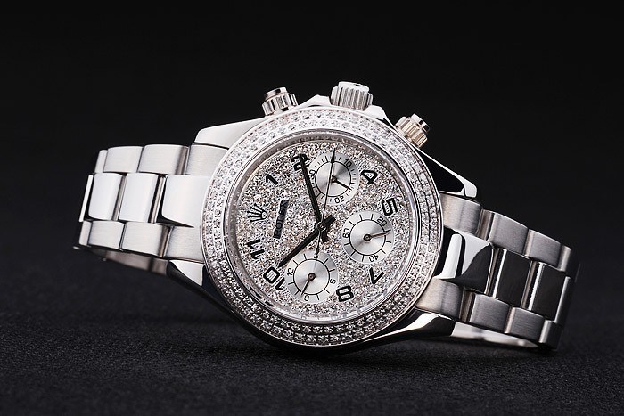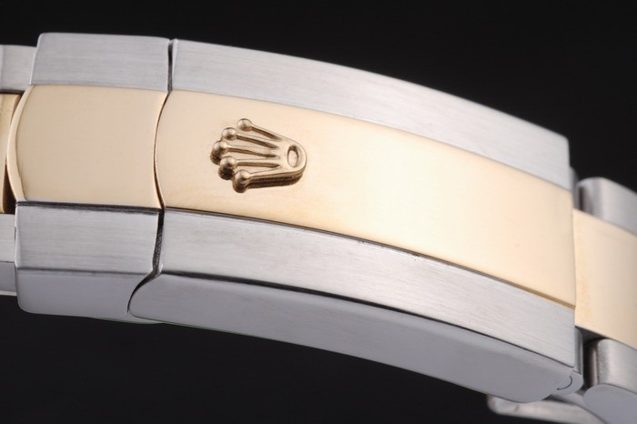 Crown: Polerat rostfritt stål cutwork krona med Rolex logotyp och ytterligare två kronor på vardera sidan om it