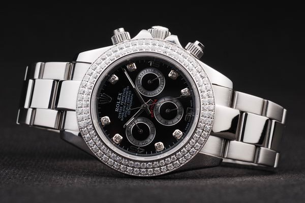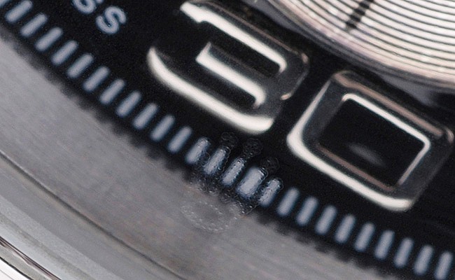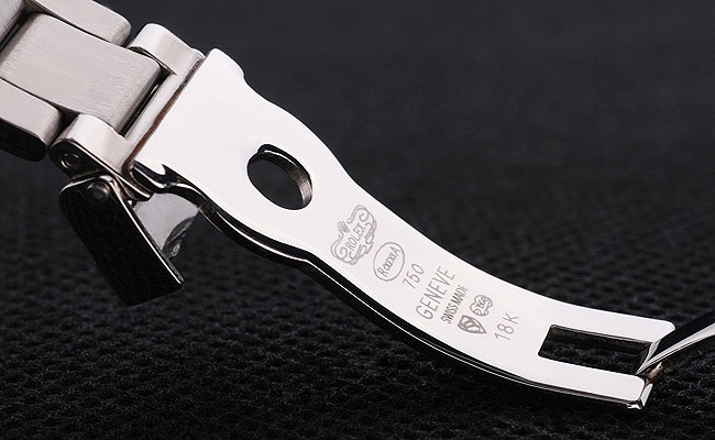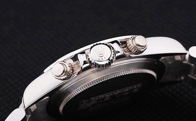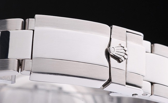 Crown: Polerat rostfritt stål cutwork krona med Rolex logotyp och ytterligare två kronor på vardera sidan om it