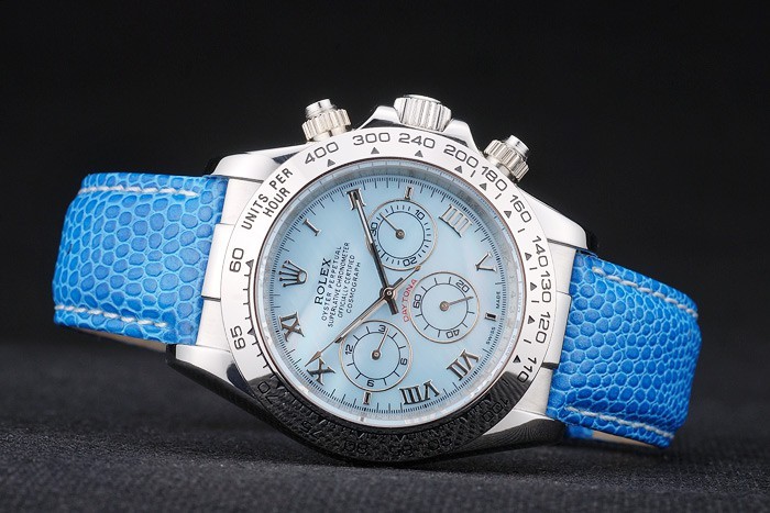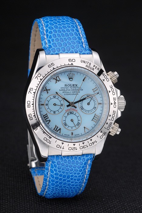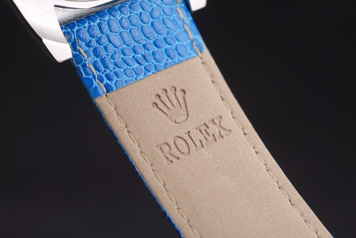 Bracelet: Blå orm läderrem med Rolex och logotyp gravyr och rostfritt stål utbyggnad lås visar Rolex logo