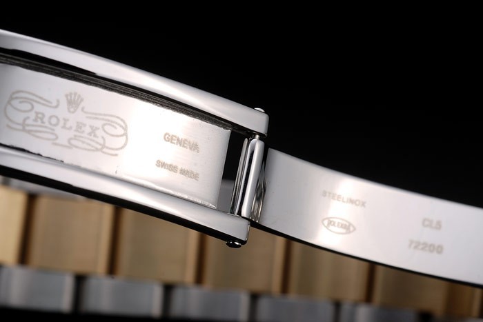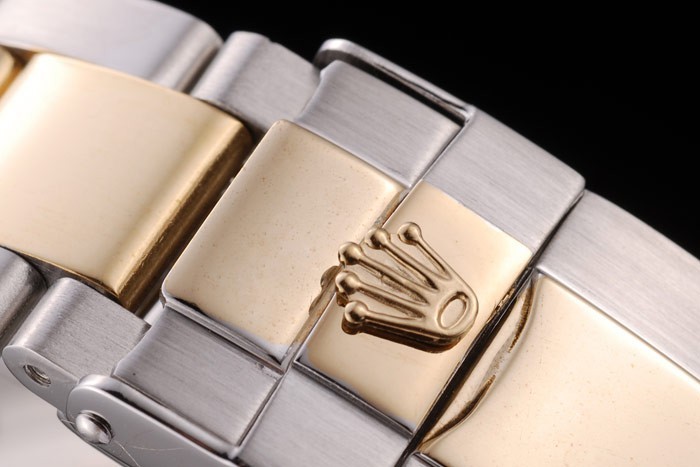 Bracelet: Gul guldpläterad och borstat rostfritt stål länk armband med graverad utbyggnad lås med Rolex logotyp på top