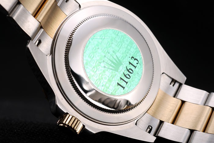 Tillbaka: Rostfritt stål snap-in tillbaka med grön Rolex äkthet sticker
