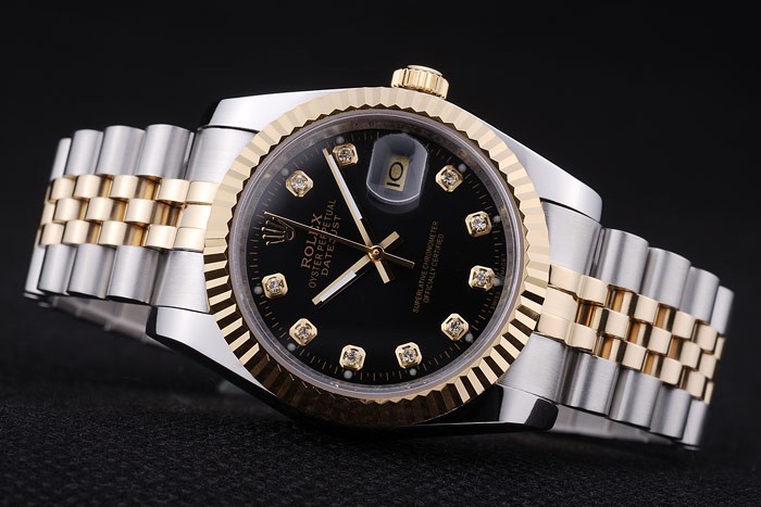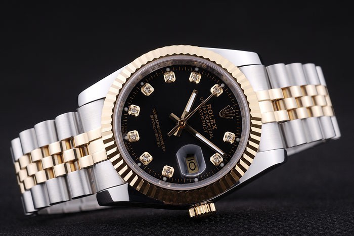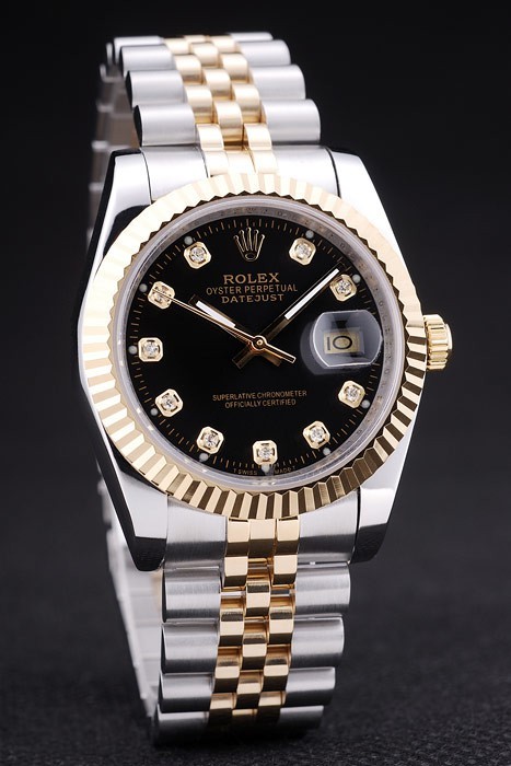 Bracelet: borstat rostfritt stål och gult guld länk armband med Rolex logotyp dold clasp