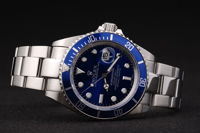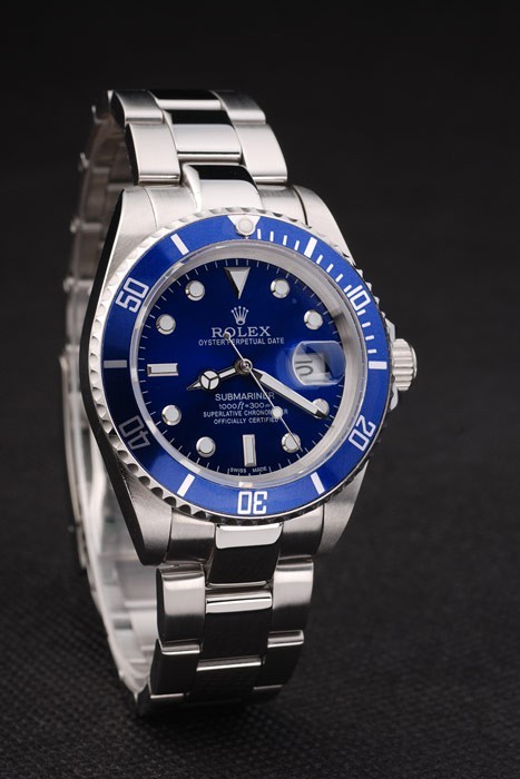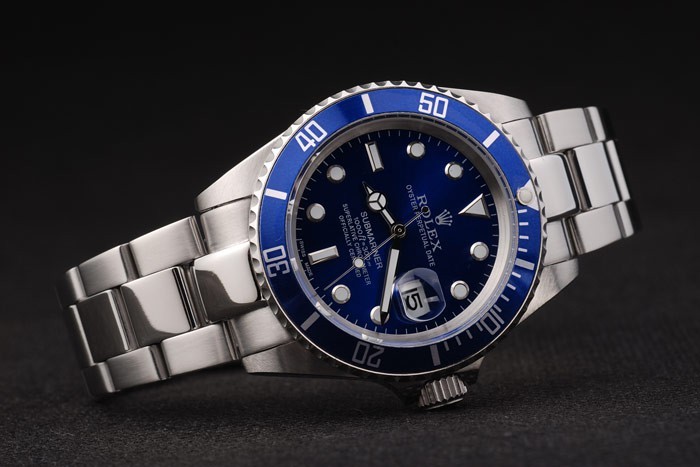 Bezel: Cutwork rostfritt stål ram med vit Luminiscent numeriska sekunder markerar kungsblå färgade bezel