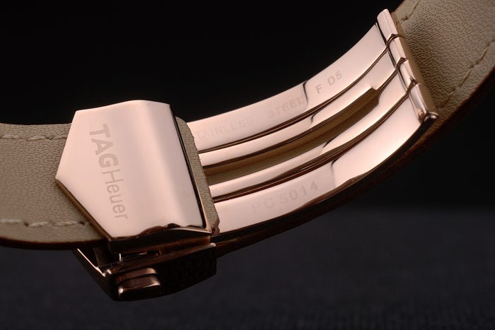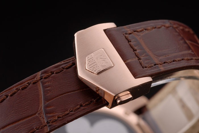Bracelet: Heat präglade Tag Heuer brun krokodil läderrem med 18k steg-guldpläterade map- i lås med tryckfrigör feature