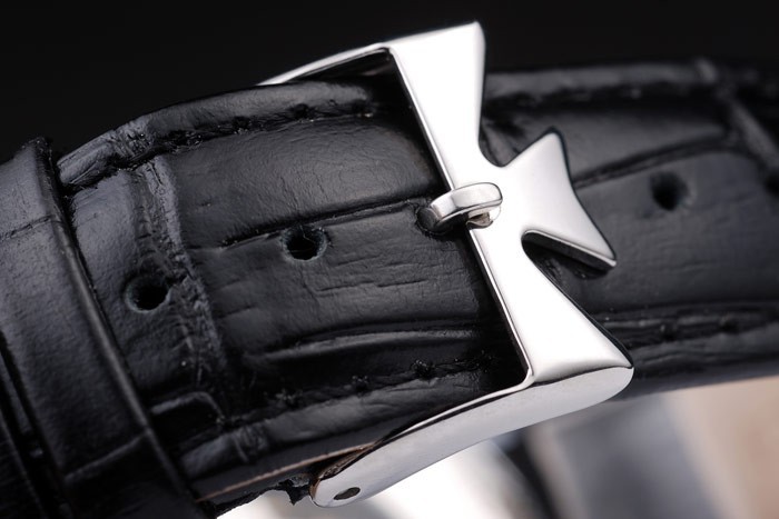 Bracelet rostfritt stål: Svart krokodil läderrem med värme präglade Vacheron Constantin stämpel och polerat rostfritt stål Vacheron Constantin logo krok-spänne clasp