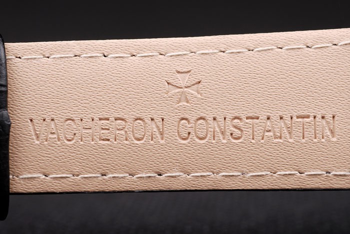 Bracelet rostfritt stål: Svart krokodil läderrem med värme präglade Vacheron Constantin stämpel och polerat rostfritt stål Vacheron Constantin logo krok spänne clasp